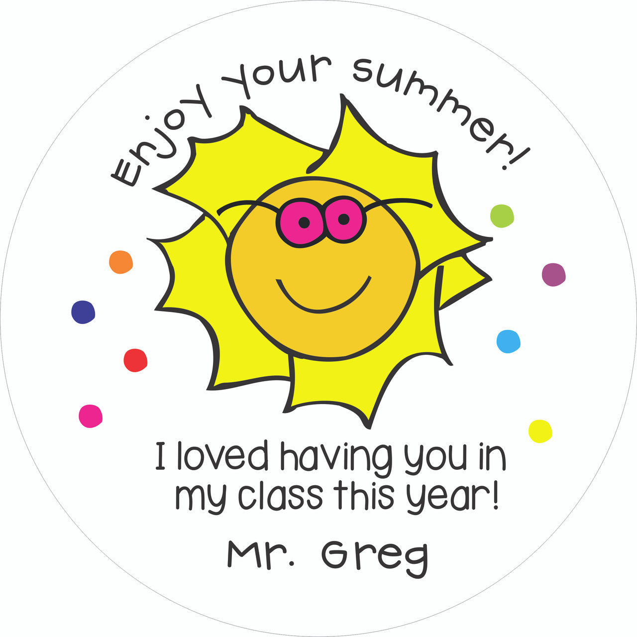 30 Customized Lollipops. 1 3/4 inch diameter. Rainbow Swirl. Fruit Flavor. 5 1/2 inches tall. Personalization information required. Shipping additional charge. Orders ship within 10 business days, priority mail.
