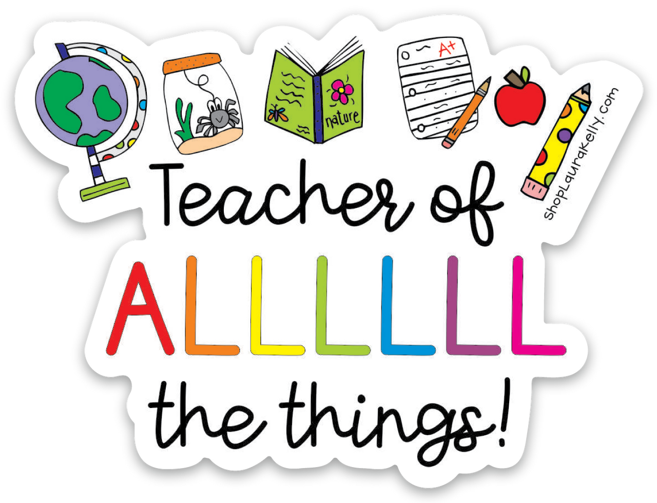 Teacher Love Collection. Teacher of ALLLLLLLL the Things #vinylsticker #LauraKellyDesigns #Teachersticker #Education #Teachergift #BacktoSchool